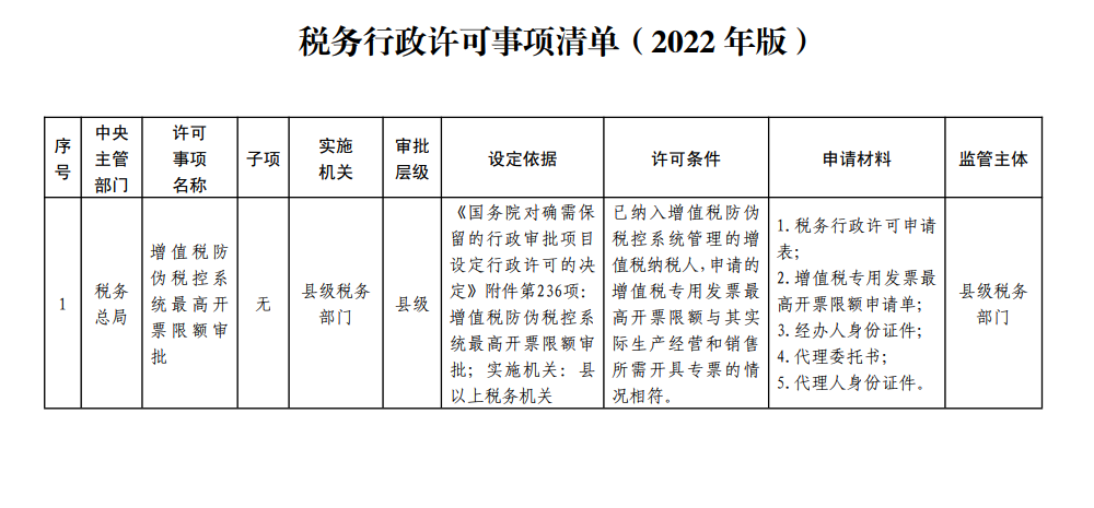 税务行政许可事项
