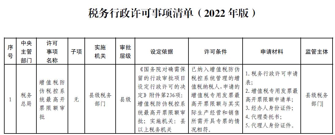 税务行政许可事项