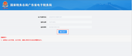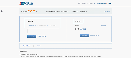 点击【银联缴款】按钮,弹出“银联缴款”页面,确认缴款信息无误后,点击【确认支付】按钮,系统跳转至银联在线支付界面;