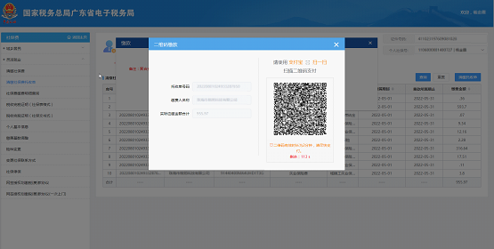 点击【微信缴款】按钮,弹出“二维码缴款”页面,确认缴款信息无误后,使用微信【扫一扫】二维码支付;