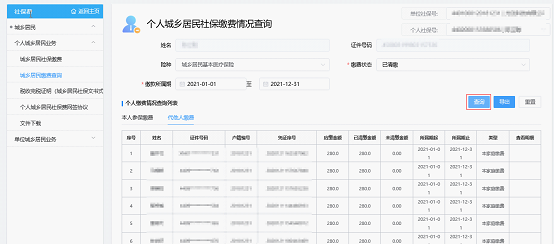 【查询】:城乡居民参保人员登录,默认带出本人的参保缴费信息;