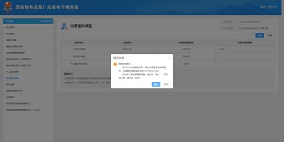 b) 在“缴费基数调整”行填入变更后的内容,确定填写无误后点击【确定】按钮;