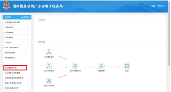 1. 登录广东省电子税务局--社保费管理界面。(如存在多个单位编号,请选择需要办理退费的单位编号登录)