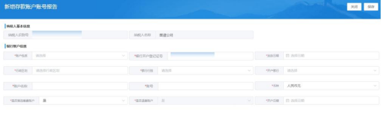 2.2界面会自动跳转至【新增存款账户账号报告】,录入银行账户信息点击保存。