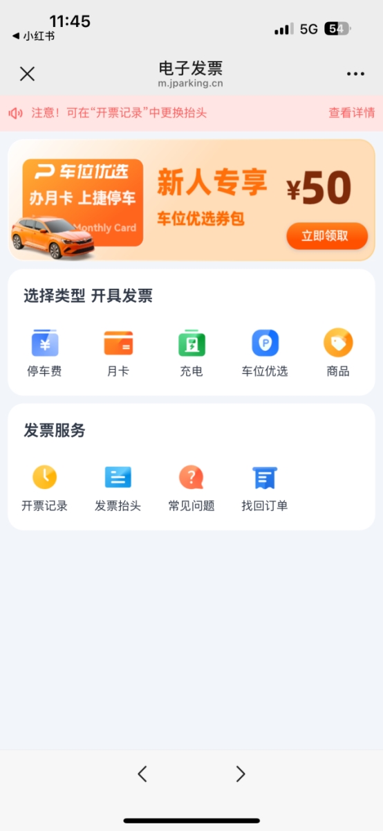 车主可通过“捷停车”公众号提前设置发票抬头信息。 受访者供图