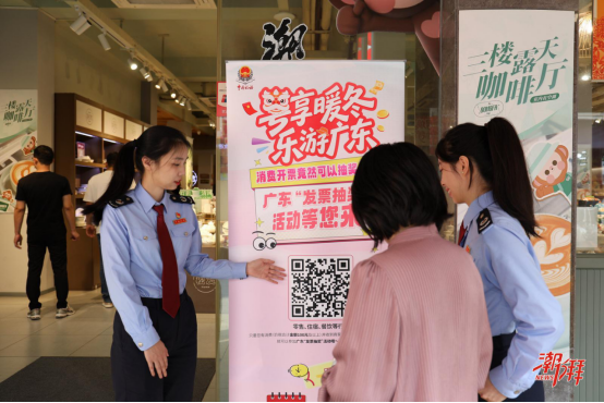 2025年12月1日至2026年3月31日,广东省推出“粤享暖冬 乐游广东”发票抽奖活动。国家税务总局潮州市湘桥区税务局抢抓古城旅游热潮,以“发票抽奖惠民生 规范经营促发展”为主题,组织业务骨干走进牌坊街,将广东省(不含深圳市)发票抽奖活动精准送达消费一线。