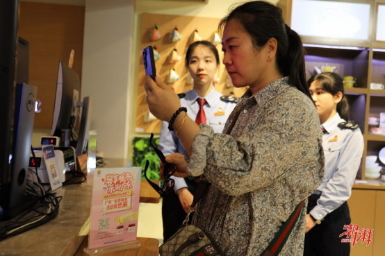据悉,该活动覆盖零售、住宿、餐饮等行业,个人消费者取得广东省(不含深圳市)内单笔含税金额100元及以上的普通发票,均可参与抽奖。税务人员精准对接牌坊街代表性餐饮、住宿、零售等商户,在店外醒目位置布设活动宣传海报,同步引导商户和消费者扫码了解“粤享暖冬 乐游广东”活动详情。在商户的收银台边放置活动宣传台牌,方便消费者结账后了解信息并索要发票,即时参与抽奖。目前全市已有200余户商户完成台牌布设,实现核心消费场景全覆盖。