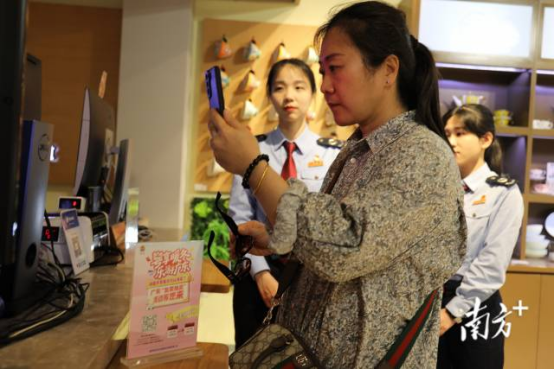 “打开微信‘粤税通’小程序,实名登录后找到‘我的发票——个人有奖发票’模块,扫描发票二维码或输入发票信息就能参与,即时开奖。”在现场,税务干部手把手指导游客操作。抽奖共设200元、100元、50元、20元、10元五个奖级,奖金通过第三方支付实时到账。