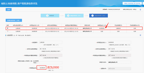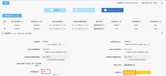 1.4维护已申报的从租信息。需重新维护已申报的从租信息(1月份),申报租金收入:为申报租金所属租赁期起止的房租(例如:2000),保存。