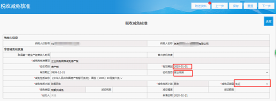 2.2录入减免数据,上传附送资料,根据需求选择有效期起、减免性质名称、减免征类型等信息。