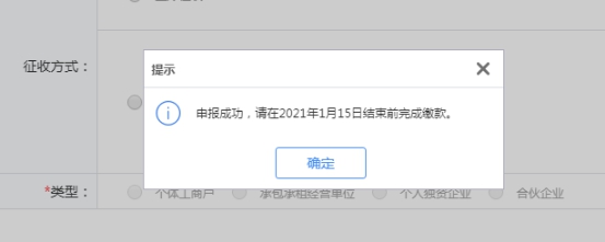 首先进行常规的申报,在申报确认时,系统会自动根据您的申报情况弹出以下提示: