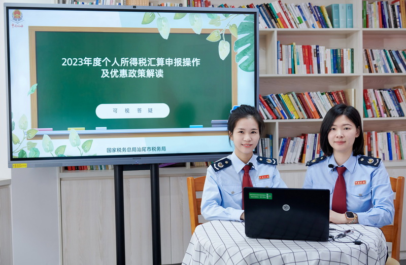 “在刚刚讲解的过程中,我们的互动区有不少观众提出了问题,接下来请郑老师为大家解答……”在第33个全国税收宣传月期间,汕尾市税务局可视答疑专题课程于近日开讲,青年税务“主播”围绕申报操作要点等内容,在线为纳税人缴费人讲解个人所得税年度汇算申报操作及优惠政策解读,实时解答观众提出的各类问题。与此同时,由业务骨干组成的答疑助手团队也全程在线,及时收集回应纳税人在评论区的提问,实现线上办税缴费辅导广覆盖。数据显示,短短半小时的可视答疑,便吸引1849人次在线学习,实时解决纳税人缴费人关心的赡养老人、子女教育、继续教育等专项附加扣除热点问题27个。