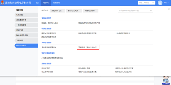 登录全国统一规范的电子税务局(网址http://guangdong.chinatax.gov.cn):【我要办税】-【综合信息报告】-【状态信息报告】-【清税申报(税务注销办理)】,跳转至清税申报(税务注销办理)界面→展示注销原因→选择注销原因。