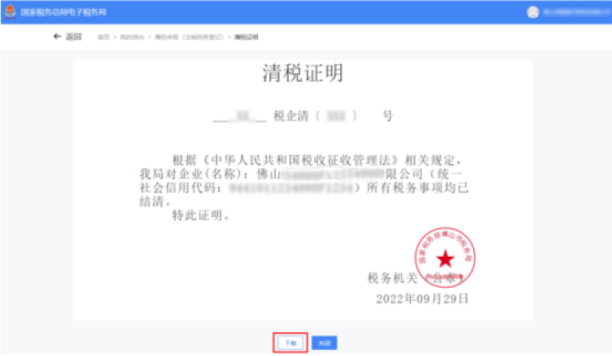 ④跳转至清税证明界面,点击【下载】进行清税证明下载。