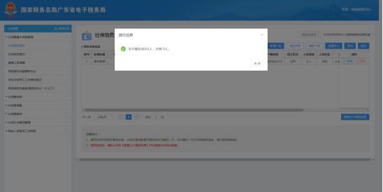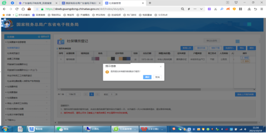 步骤4:检查【增员名单信息】列表中的信息无误后,点击【提交】,弹出“提交确认”对话窗口,点击【确定】。