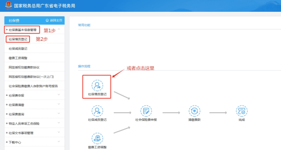 微信内搜索“粤税通”小程序,注册并完成实名认证后登录办理:【社保业务】→【更多】→【增员】,按照相关步骤操作即可;【全部功能】→【社保业务】→【增员】,按照相关步骤操作即可。 |