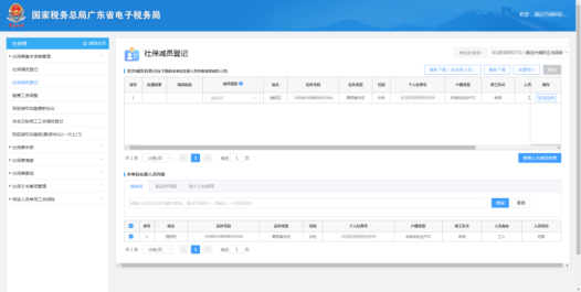 步骤2:在【本单位在册人员列表】勾选需要减掉的人员信息,勾选后在【本次减员名单】显示勾选的待减员信息。