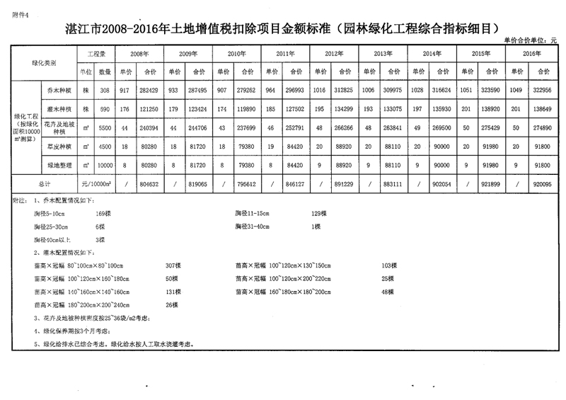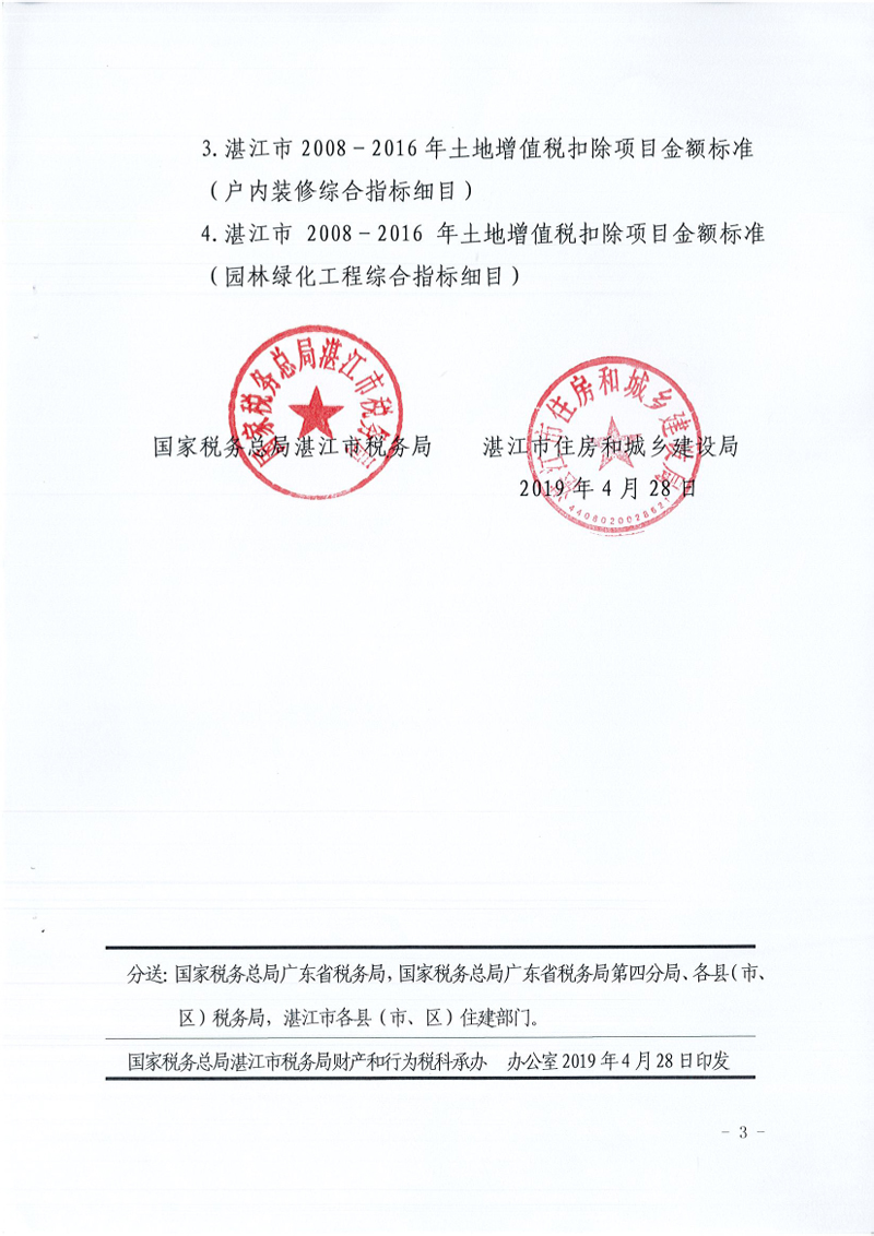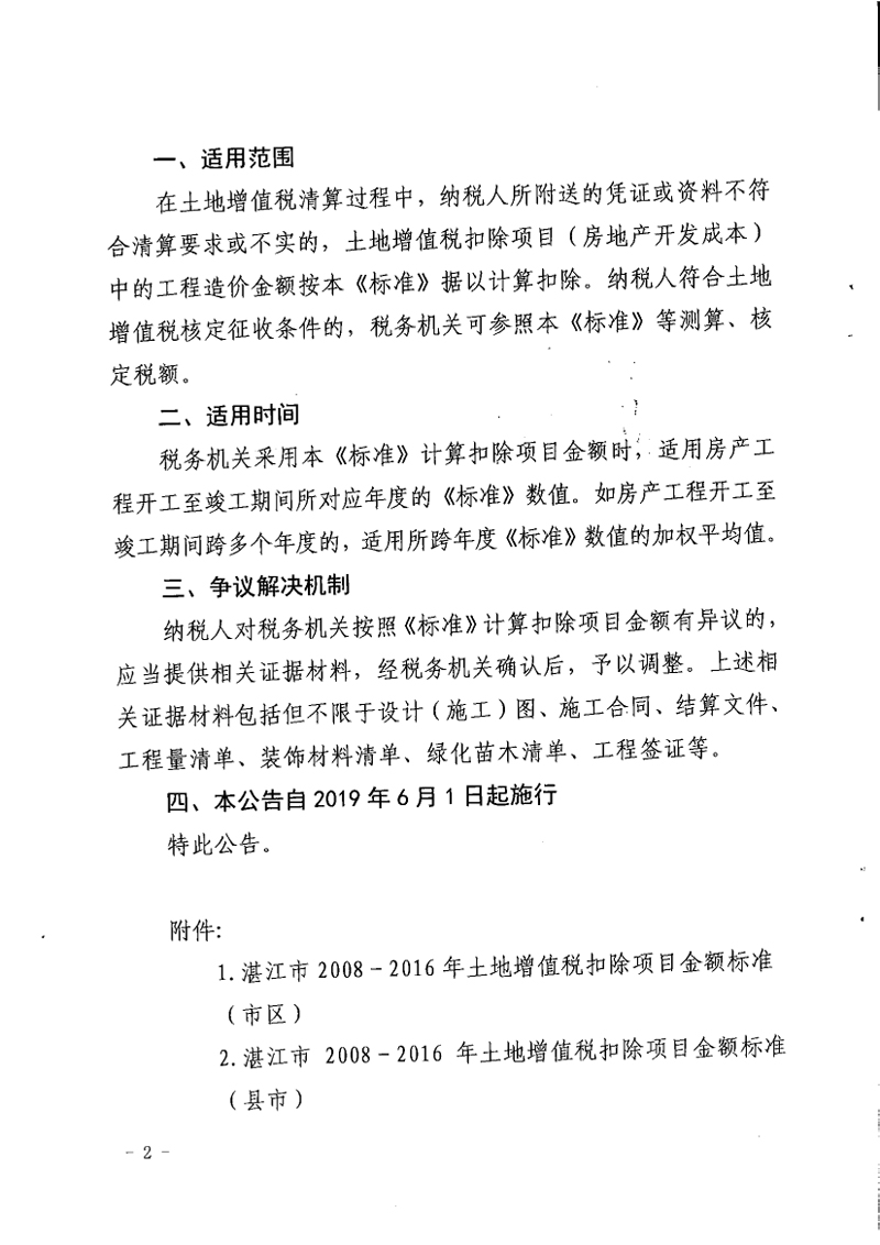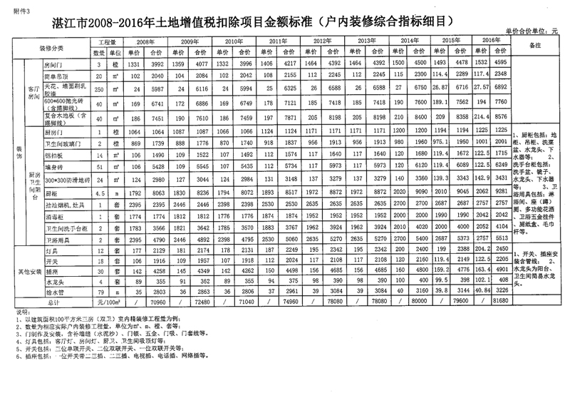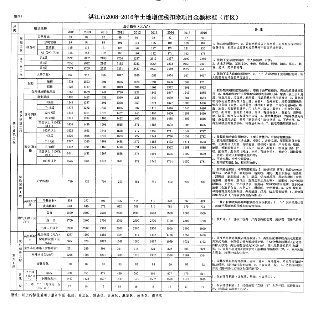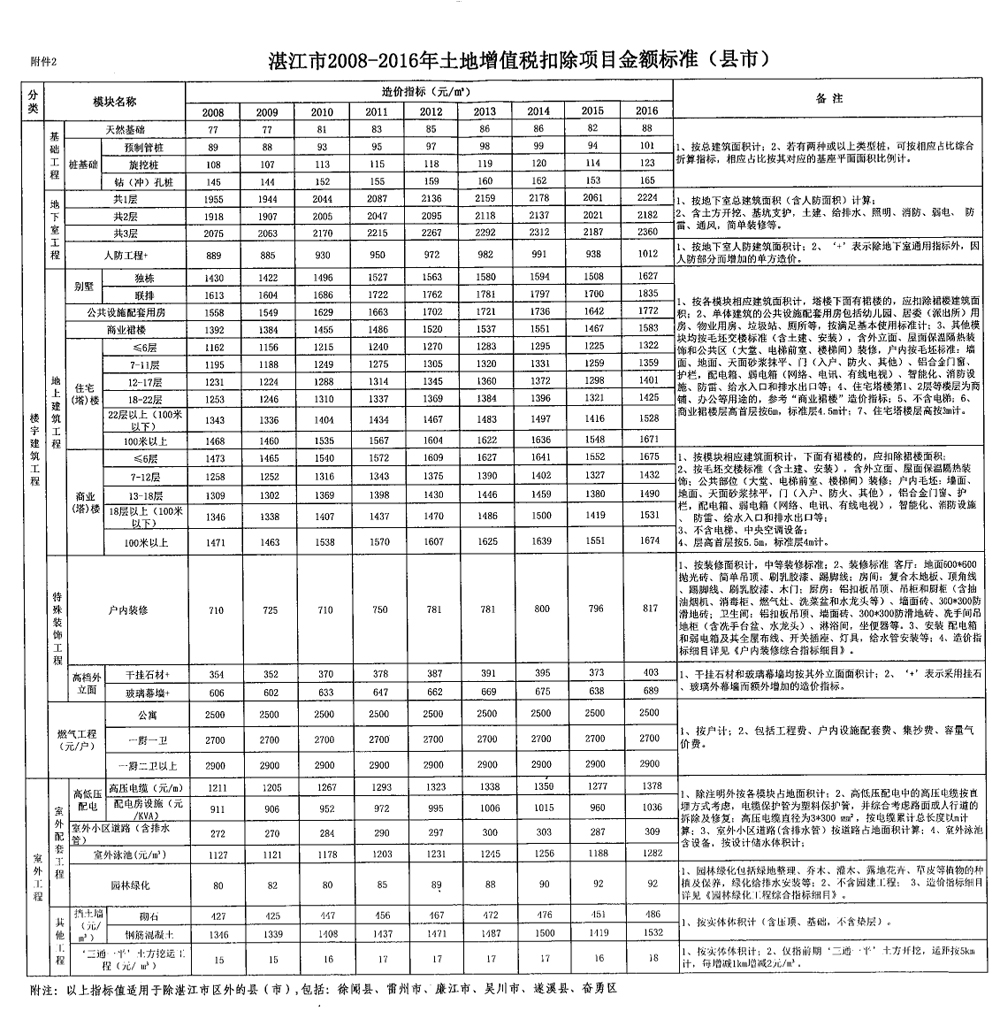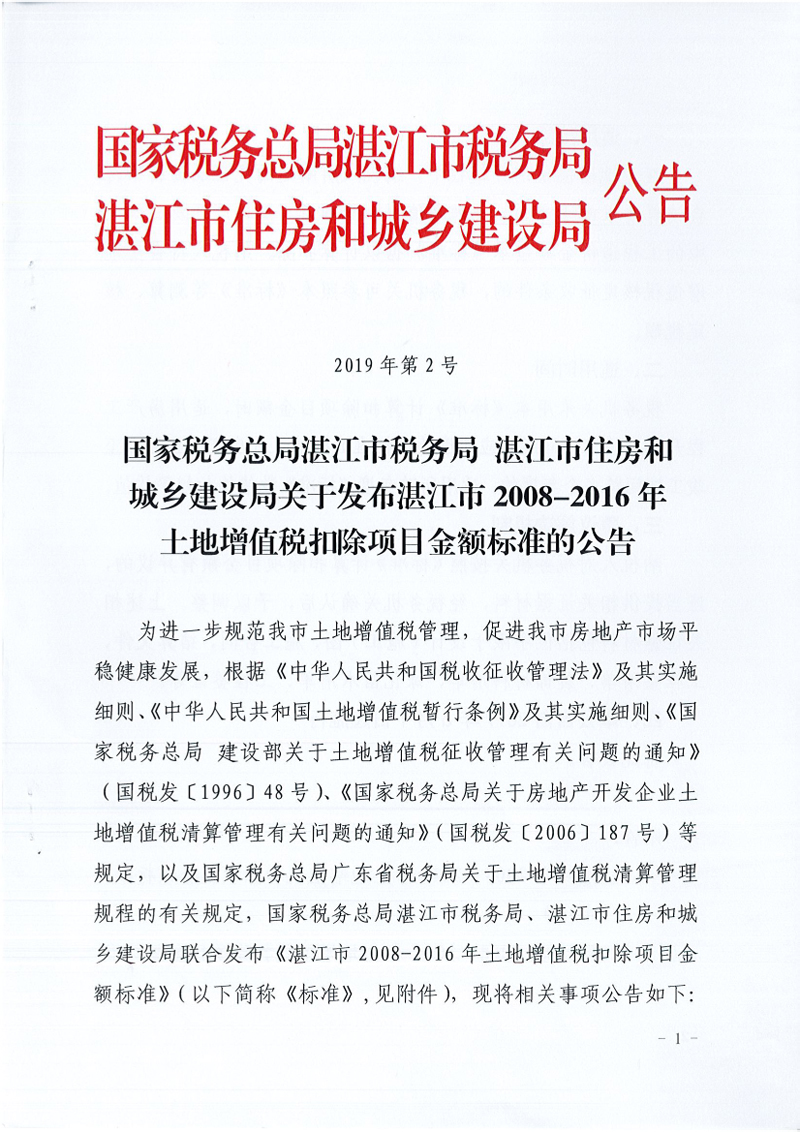 国家税务总局湛江市税务局 湛江市住房和城乡建设局关于发布湛江市2008-2016年土地增值税扣除项目金额标准的公告