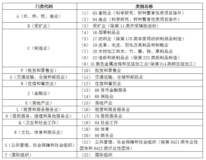 说明:以上目录按照《国民经济行业分类》(GB/T 4754-2011)编制。