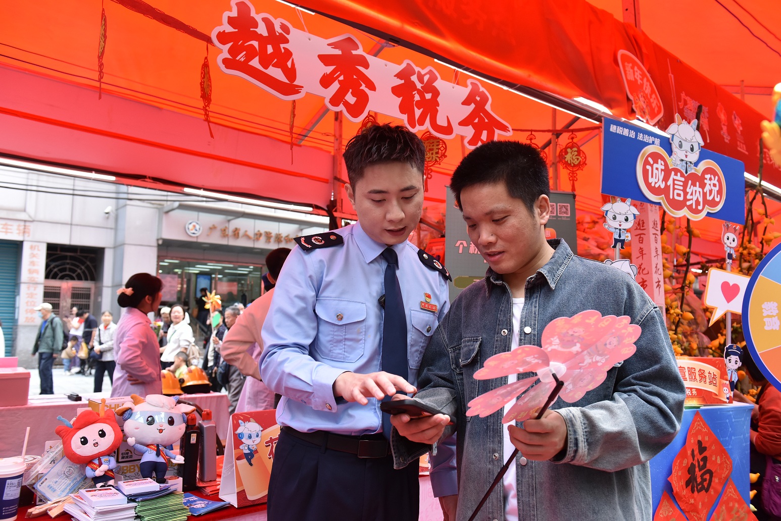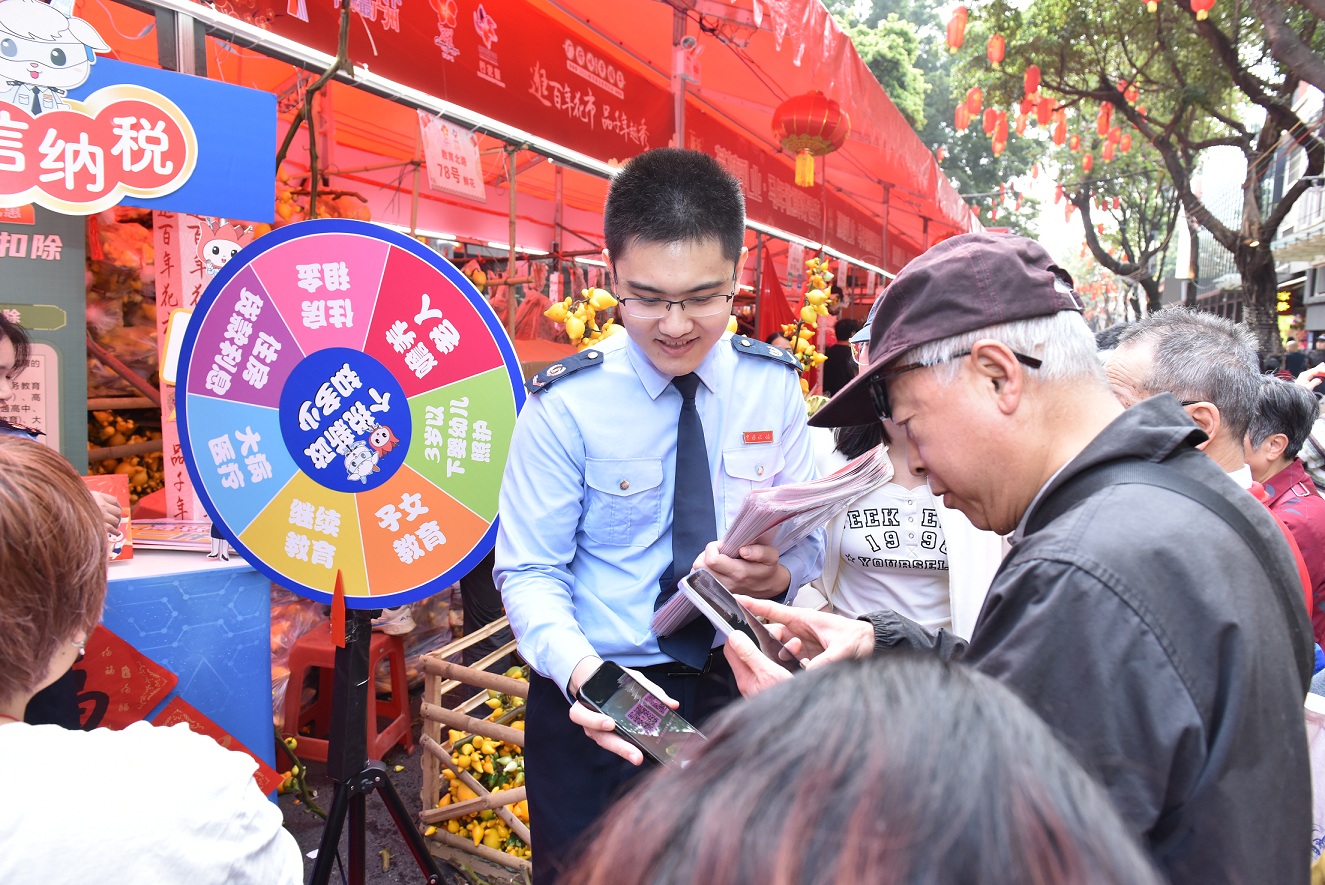 农历新年前夕,越秀区税务局走进百年西湖花市,开展“有奖发票”及个税政策现场解疑释惑,与广大市民共贺马年新春。
