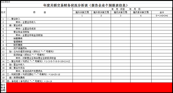 7.《年度关联交易财务状况分析表》必须在“划分标准说明”中添加成本、费用的划分标准