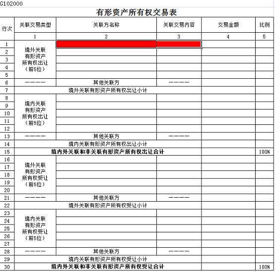 纳税人与境外关联方发生来料加工业务,应将关联交易金额按照原材料-来料加工”(按照企业年度进口报关价格计算)、产品(商品)-来料加工(按照企业年度出口报关价格计算)分别填写在《G102000有形资产所有权交易表》对应栏次。