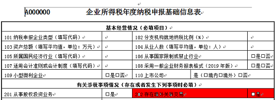 纳税人在进行企业所得税年度纳税申报时,要注意所得税年度申报表《A000000 企业所得税年度纳税申报基础信息表》中的“202存在境外关联交易”项目的勾选,如果勾选是,则意味着本年度企业存在与境外关联企业的交易,相应的《G100000 中华人民共和国企业年度关联业务往来汇总表》“境外关联交易金额”的合计数不可以为零。