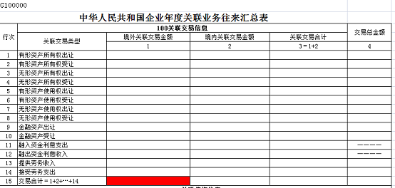 1.《A000000 企业所得税年度纳税申报基础信息表》与《G100000 中华人民共和国企业年度关联业务往来汇总表》的勾稽关系