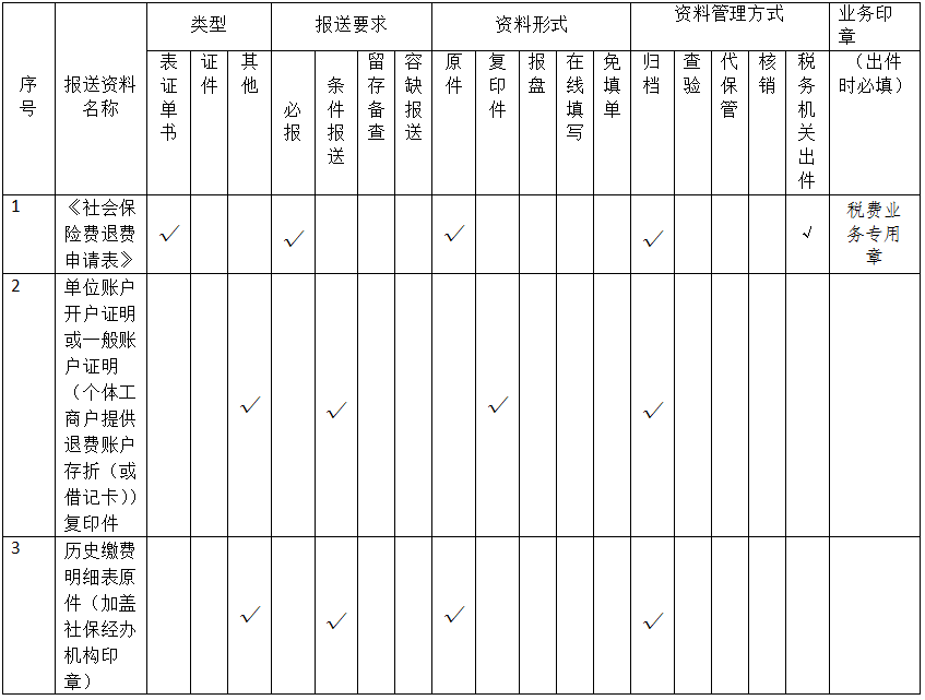 5.2缴费人的历史缴费明细表原件(加盖社保经办机构印章)的报送条件为:不同统筹区重复缴纳的;