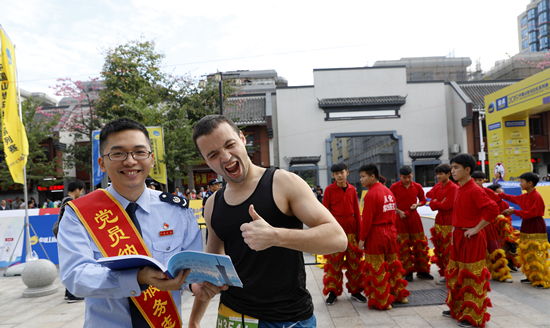 税务人员在“中国山地马拉松(国际赛)”活动现场面向港澳青年开展税收宣传活动