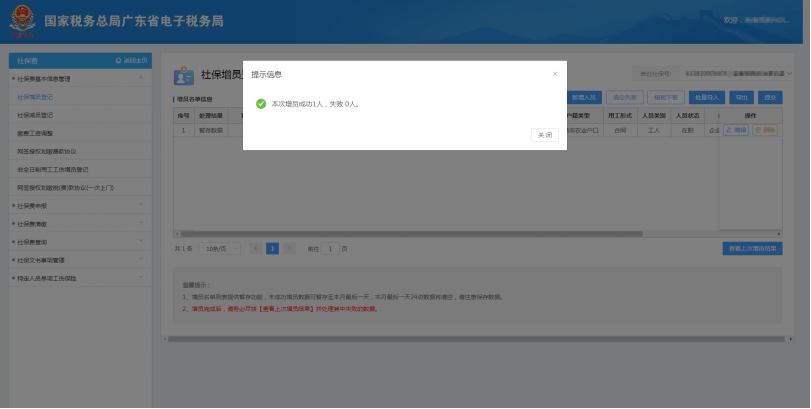 (4)系统弹出增员成功提示信息,此时批量导入增员成功。