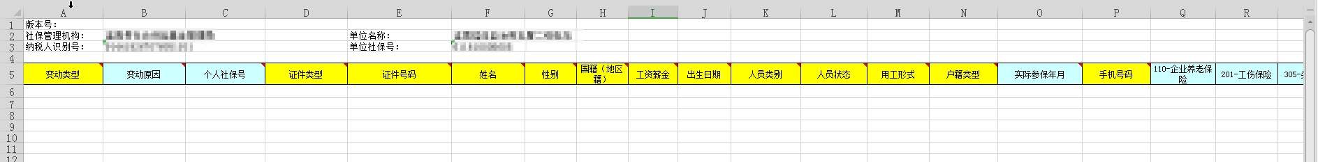 (1)点击菜单【社保增员登记】模块功能,进入社保增员登记界面;点击【模板下载】按钮下载空模板,录入新增人员信息。