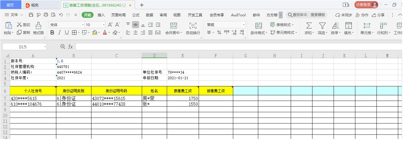 ☆注:单次批量导入的缴费工资调整文件,人数不可超过一千人,若调整人数超过一千人,则需要分多次重复导入操作。
