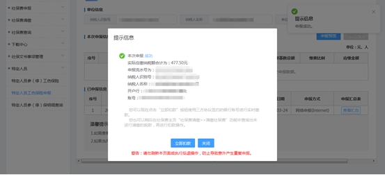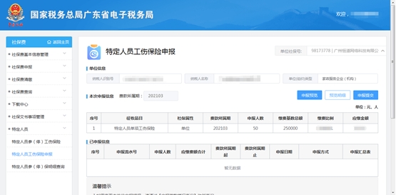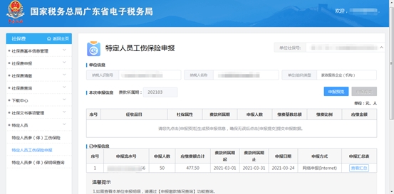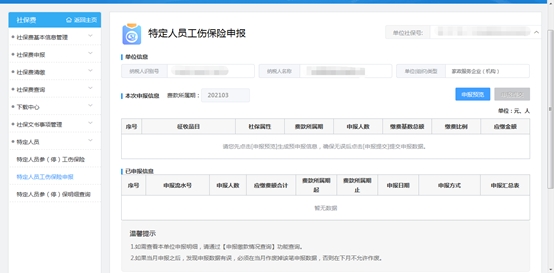 2、特定人员工伤保险申报后,必须当期缴款,超期自动作废申报。