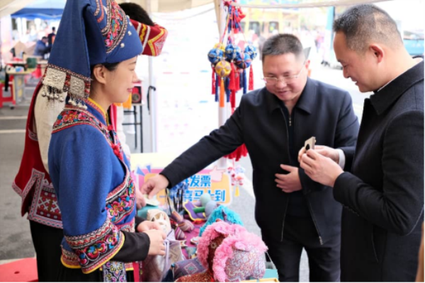 在一处特产摊位前,连山壮族瑶族自治县县委副书记、县长陆治杰亲自上阵,当起了“税收宣传员”。“这是我们连山的丝苗米,吃了过个‘有米’年!”他一边热情推介本地特产,一边自掏腰包买下一件民族工艺品。消费结账后,陆治杰在工作人员指引下体验发票抽奖活动,大力点赞这一创新举措:“既能引导消费者依法索票,又能激活消费热情,真是一举多得。”调研中,他不忘叮嘱商户:“要依法开票、诚信经营,主动提醒消费者参与抽奖,祝大家生意兴隆。”