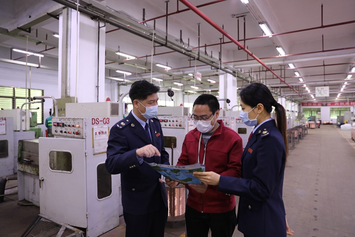 税务人员为企业现场讲解税费优惠政策。张伟健 摄