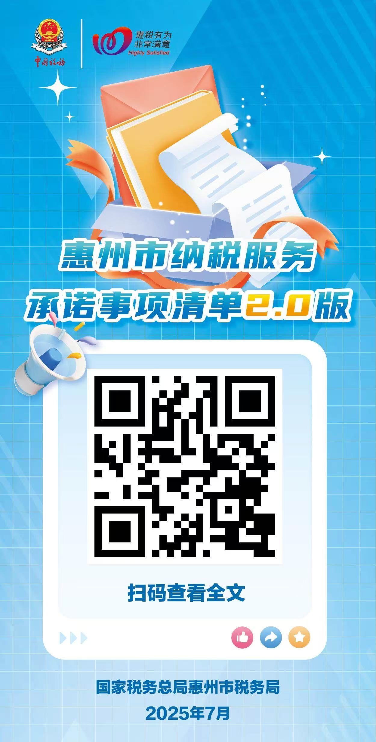 扫码查看《纳税服务承诺事项清单2.0版》、产业服务“惠税通”品牌、《中小企业全生命周期税费服务手册》