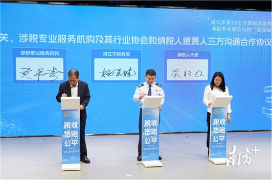 活动现场,湛江市税务局党委委员、总会计师杨景健代表税务部门,与湛江市财税服务行业协会、纳税人代表共同签订了《税务机关 涉税专业服务机构及其行业协会和纳税人缴费人三方沟通合作协议》。协议明确三方在信息共享、风险预警、合规辅导、诉求响应、联合培训等方面的协作内容,建立了联席会议、专题活动、座谈走访等常态化沟通机制,确保税收政策传导更精准、企业诉求解决更高效、行业监管更有力,为更好地优化营商环境、强化行业自律、促进合规发展提供坚实制度保障。