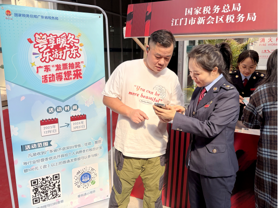 此外,结合春节前后的消费旺季,新会税务部门还在新会星汇广场、新汇大融城等多个商圈摆放和派发“粤享暖冬 乐游广东”发票抽奖活动宣传资料千余份,帮助市民了解、掌握活动参与的方式方法,提高市民活动参与积极性,激发消费活力。