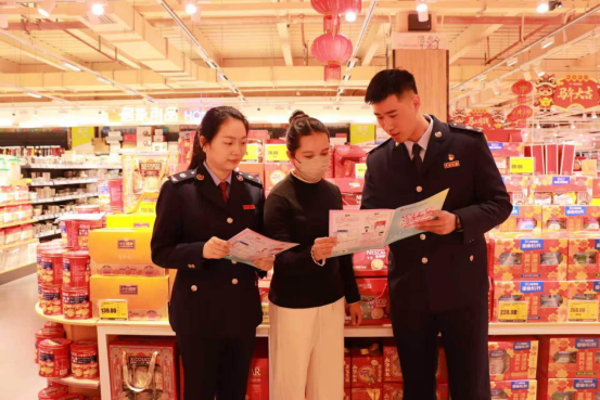 在揭西县,税务干部组成税务“蓝精灵”志愿服务队,走进多家商超、家电商铺,沉浸式开展广东省“粤享暖冬 乐游广东”发票抽奖推广工作,将发票抽奖的惊喜送到群众身边,把惠民好政策落到县域发展最前线。