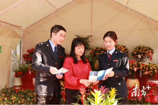 在花市固定咨询点,税务干部用本地方言以拉家常的方式,向群众讲解个人所得税、社保医保缴费等热点问题,同步宣传“粤享暖冬 乐游广东”有奖发票活动规则,引导群众消费索票、抽奖享惠,助力文旅消费产业持续火热。“逛花市还能领到喜庆春联,学到涉税知识,体验发票抽奖活动,这份‘税务年货’既实用又暖心!”市民王大爷接过春联,连连为税务服务点赞。与此同时,税务干部还向商户和群众宣传纳税缴费信用相关知识,推广“奖惩结合”的纳税缴费信用管理机制,引导市场主体合规经营、诚信纳税。