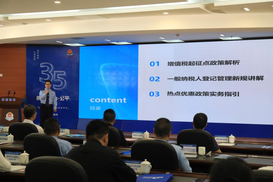 在政策宣讲与座谈交流环节,税务业务骨干聚焦 《中华人民共和国增值税法》及其实施条例,结合揭阳特色产业发展实际,围绕新旧政策差异、申报实操要点、涉税风险防控、企业合规应对等内容进行深入浅出解读,让政策红利精准直达企业。
