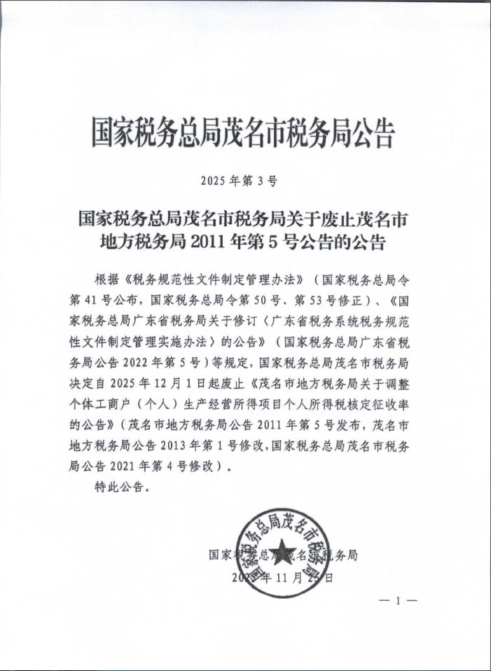 国家税务总局茂名市税务局关于废止茂名市地方税务局2011年第5号公告的公告