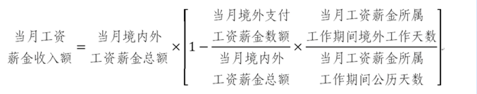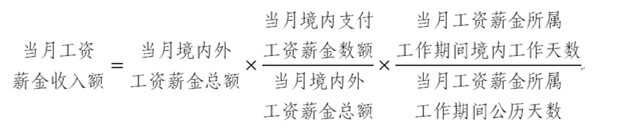 答:在一个纳税年度内,在境内累计居住不超过90天的非居民个人,仅就归属于境内工作期间并由境内雇主支付或者负担的工资薪金所得计算缴纳个人所得税。当月工资薪金收入额的计算公式如下: