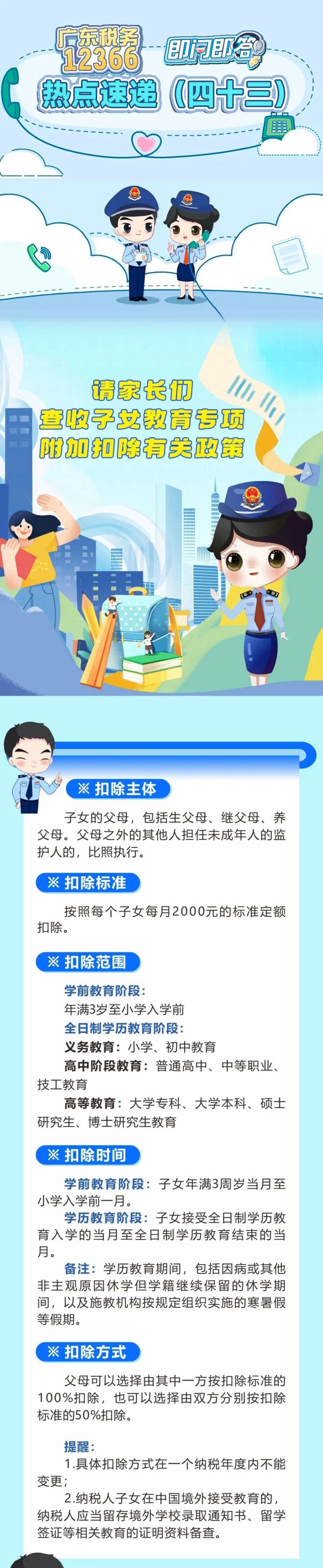广东税务12366热点速递(四十三)丨子女教育专项附加扣除该如何享受?