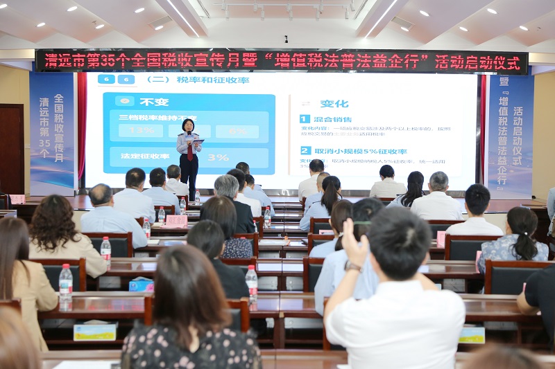 本次活动以“税收·法治·公平”为主题,“税务+司法行政”联合推动税收普法融入地方普法“大盘子”,围绕今年正式实施的增值税法及其实施条例等重点税收政策,打造别开生面的系列税收普法活动,通过政策宣介、合规访谈、税企面对面等形式,强化市场主体合规经营意识,营造法治公平的税收营商环境,为清远经济社会高质量发展注入“税动能”。