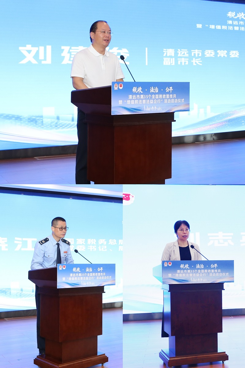 随着现场领导共同按键亮灯,“税收·法治·公平”清远市第35个全国税收宣传月暨“增值税法普法益企行”活动正式启动。