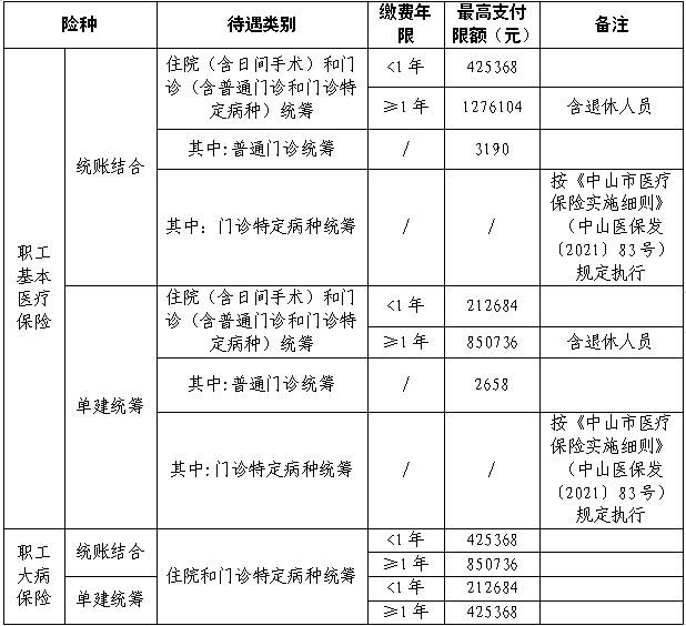 根据《中山市职工医疗保险办法》(中府〔2021〕87号)、《关于贯彻广东省职工基本医疗保险门诊共济保障实施办法的通知》(中府〔2022〕115号)和《关于落实广东省医疗保障待遇清单制度的通知》(中府〔2022〕133号)的相关规定,结合我市2023年全口径城镇单位就业人员月平均工资,现公布2025医保年度我市职工基本医疗保险缴费基数上下限、费率和医疗保险年度最高支付限额,详见附件,请遵照执行。