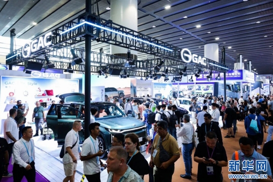 2025年10月15日,138届广交会上,广汽集团展台前,采购商体验展品。新华网发(广汽集团 供图)