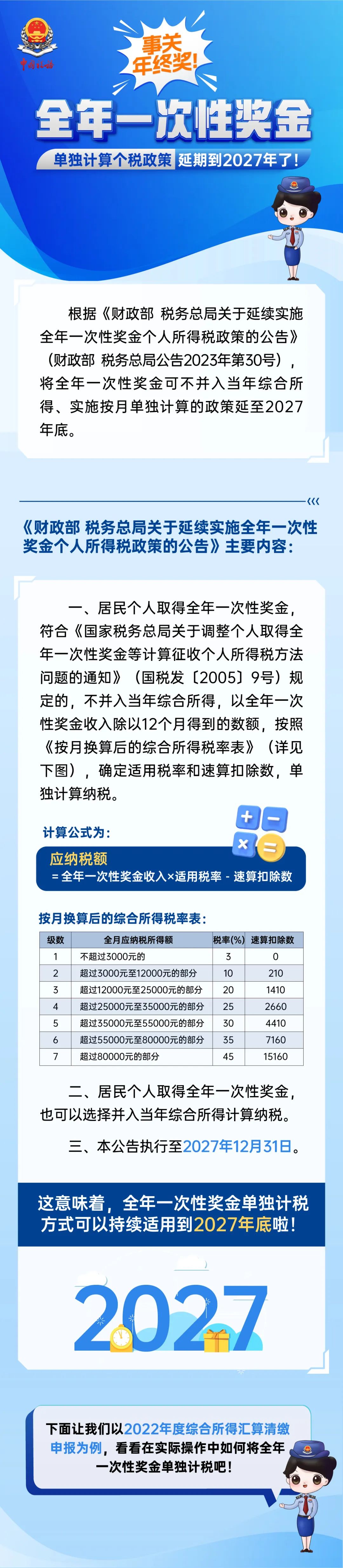 个税小课堂丨全年一次性奖金单独计算个税政策延期到2027年!